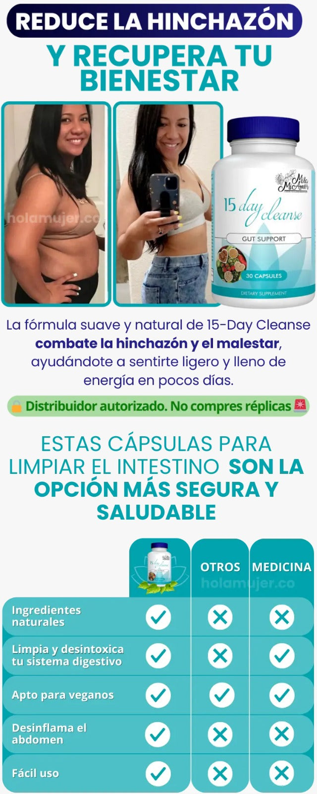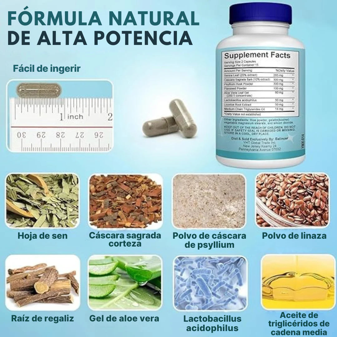 Suplemento Desintoxicante Intestinal 15 Days Cleanse es el método suave, rápido y natural para restaurar el equilibrio de tu sistema digestivo. Diseñado para funcionar en solo dos semanas, este cleanse te ayuda a decirle adiós a la sensación de pesadez y a la hinchazón.